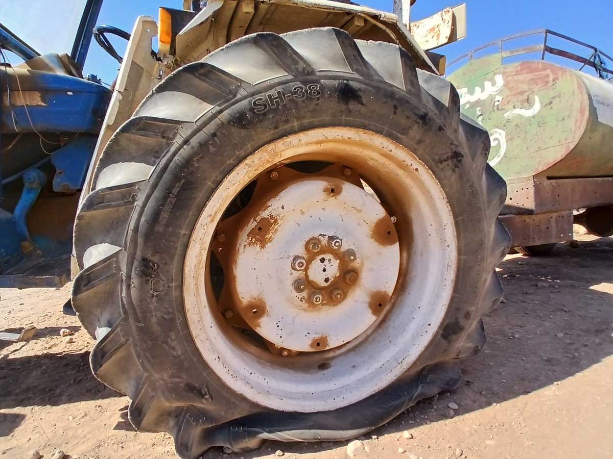 إطارات التراكتور التي ثقبها المستوطنون. صورة قدّمها السكان مشكورين