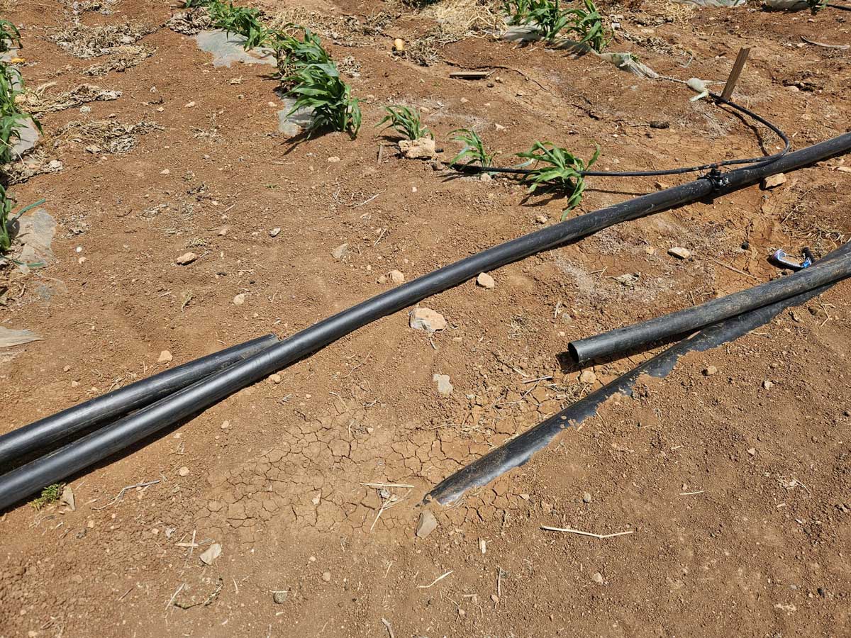 צינורות שחתכו המתנחלים במישור קאעון. צילום: עארף דראר'מה, בצלם, 27.4.25