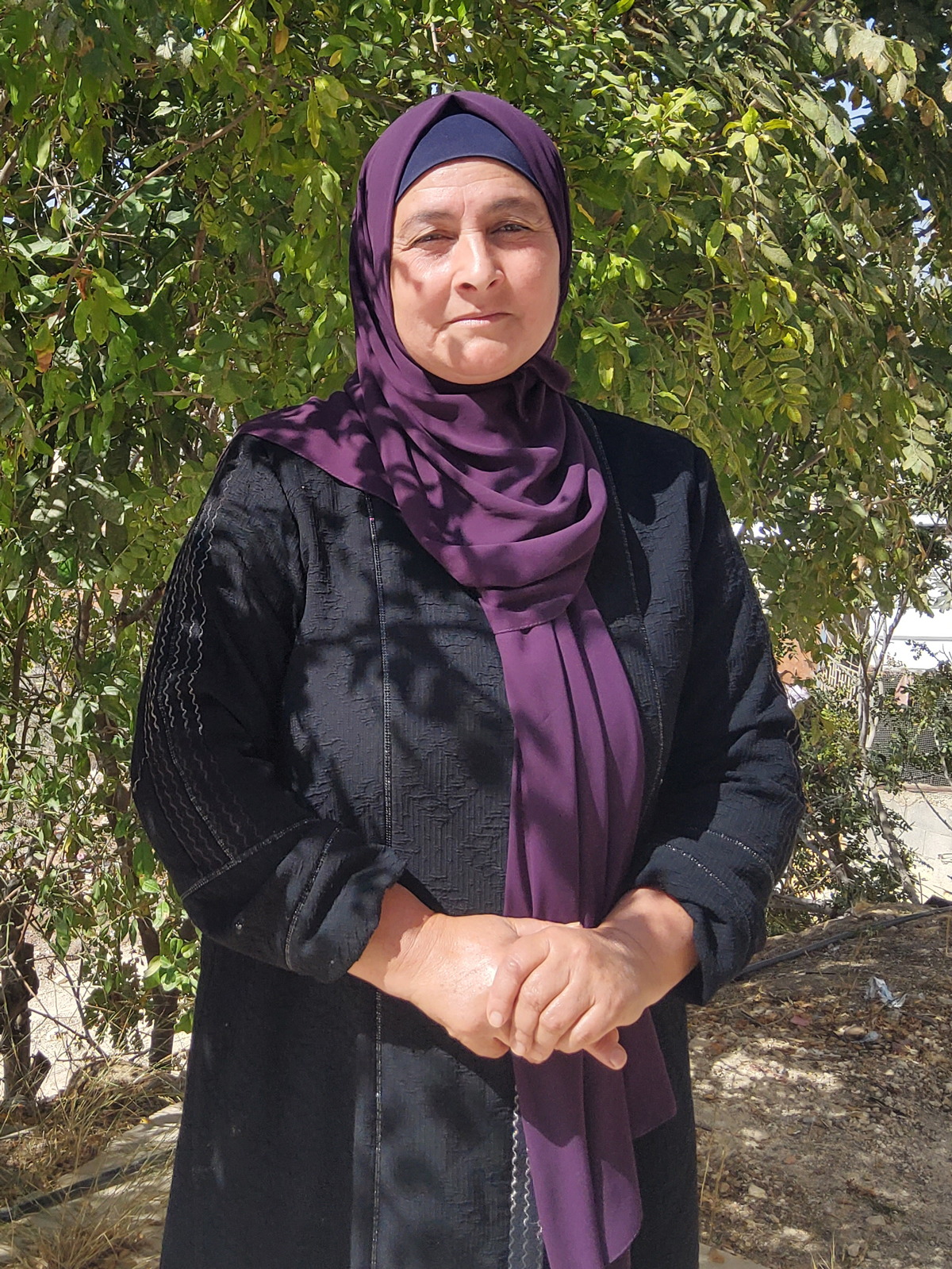 ביום שישי, 17.10.25, הגעתי יחד עם בעלי, אכרם, בן 57, בני, סארי, בן 28, בני, עבד א-רחמן, בן 12, ונכדי, מוחמד מנסור, בן 11, לאדמה שלנו בצד הצפון-מזרחי של העיירה, באזור שנקרא עין אל-קסב. יש לנו שם חלקה בשטח של בערך שמונה דונם עם כ-65 עצי זית בוגרים וכ-100 צעירים. כשהגענו לשם והתחלנו לפרוס את היריעות ואז שמענו שלוש יריות. נבהלתי מאוד, האדמה שלנו נמצאת בשטח B, ולכן מתנחלים לא אמורים להגיע לשם, אבל החדשות היומיומיות על תקיפות מתנחלים נגד חקלאים גרמו לי לחשוש. ביקשתי מבעלי שנחזור הביתה, אבל הוא אמר שאין ממה לחשוש, ושהוא ילך לבדוק את העצים הצעירים בצידה השני של החלקה.