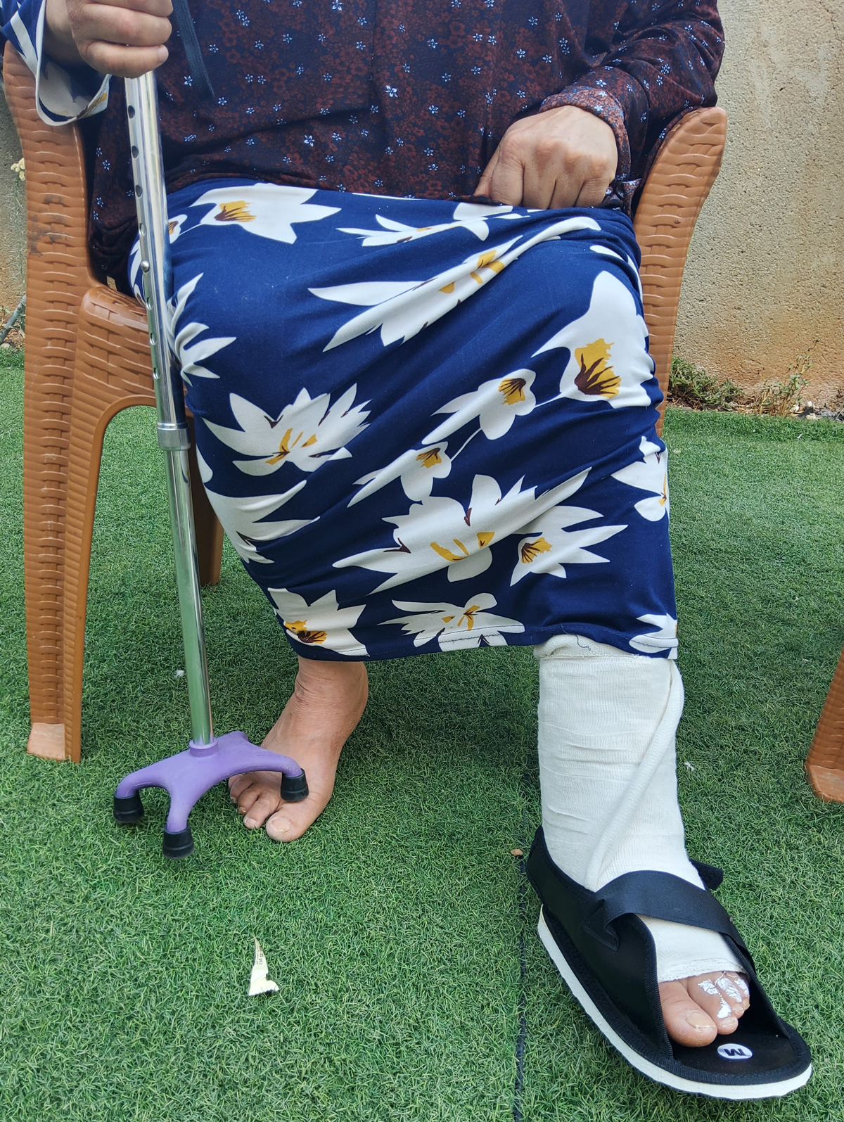 רגלה החבושה של לינא אבו זינה. צילום: סלמא א-דיבעי, בצלם