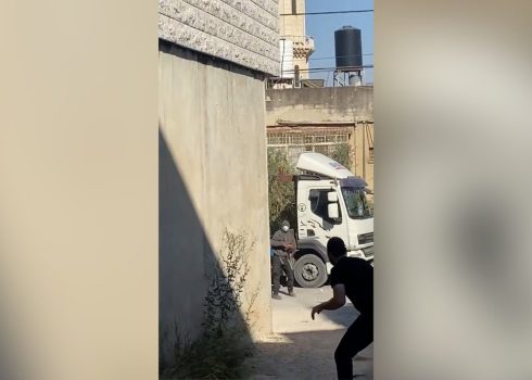 ביזאריא, מחוז שכם: מתנחלים תקפו באבנים משאית גרר באבנים והציתו מחסנים כשהם מאובטחים בידי חיילים