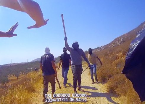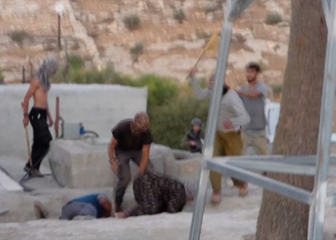 א-תוואני, דרום הר חברון: מתנחלים פלשו למטע פלסטיני כשחלקם חמושים ותקפו את בנו של בעליו ופעילים לעיני חיילים. שוטרים עצרו את בנו של בעל הקרקע