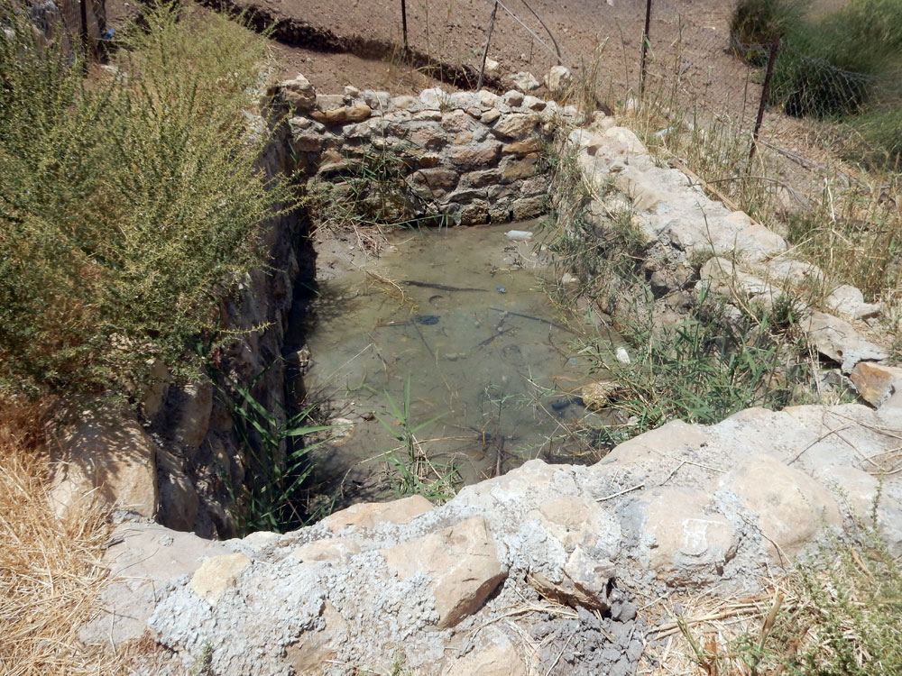 בריכת לאגירת מי מעיין ליד ח'ירבת אל-מאלח שהמנהל האזרחי מתכנן להרוס. צילום: עארף דראר'מה, בצלם, 14.6.16.