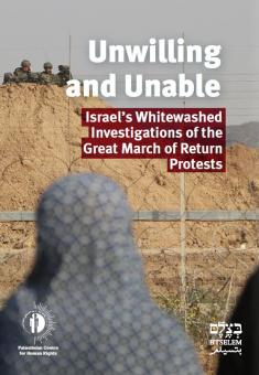 A joint report by the Palestinian Centre for Human rights (PCHR) and B’Tselem which analyzes the investigations Israel claims to have conducted following the Great March of Return protests, which were held for about a year and a half in the Gaza Strip as of March 2018. The report shows how Israel worked to whitewash the truth and protect the political and military officials responsible – instead of taking action against the individuals who devised and implemented the unlawful open-fire policy, which resulted in the killing of more than 200 Palestinians and the injury of some 8,000 others.